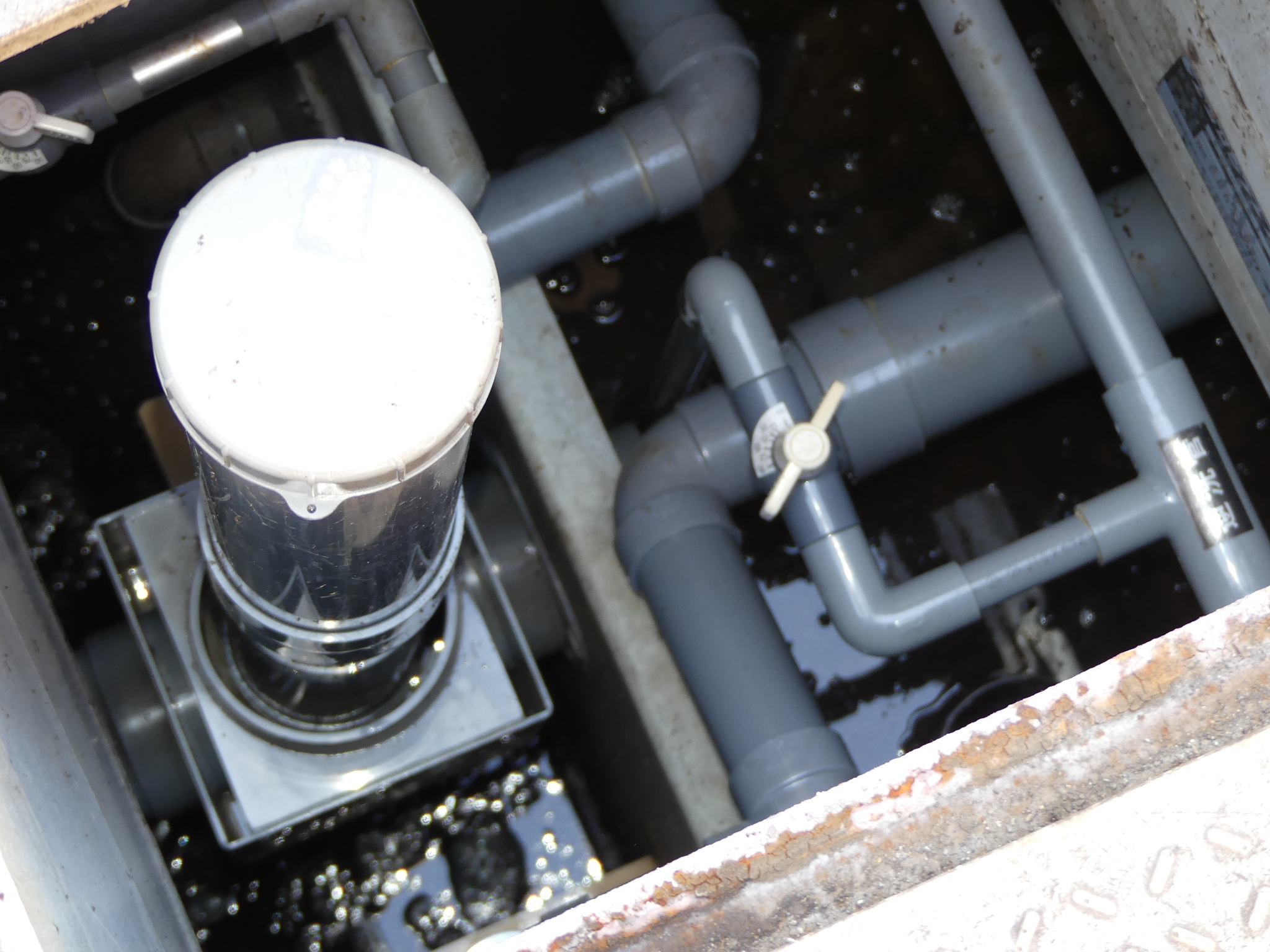 グリストラップを使わず、浄化槽の前でスカム汚水をマシコクリーンに流し込む分解処理装置を見学し効果を実感、