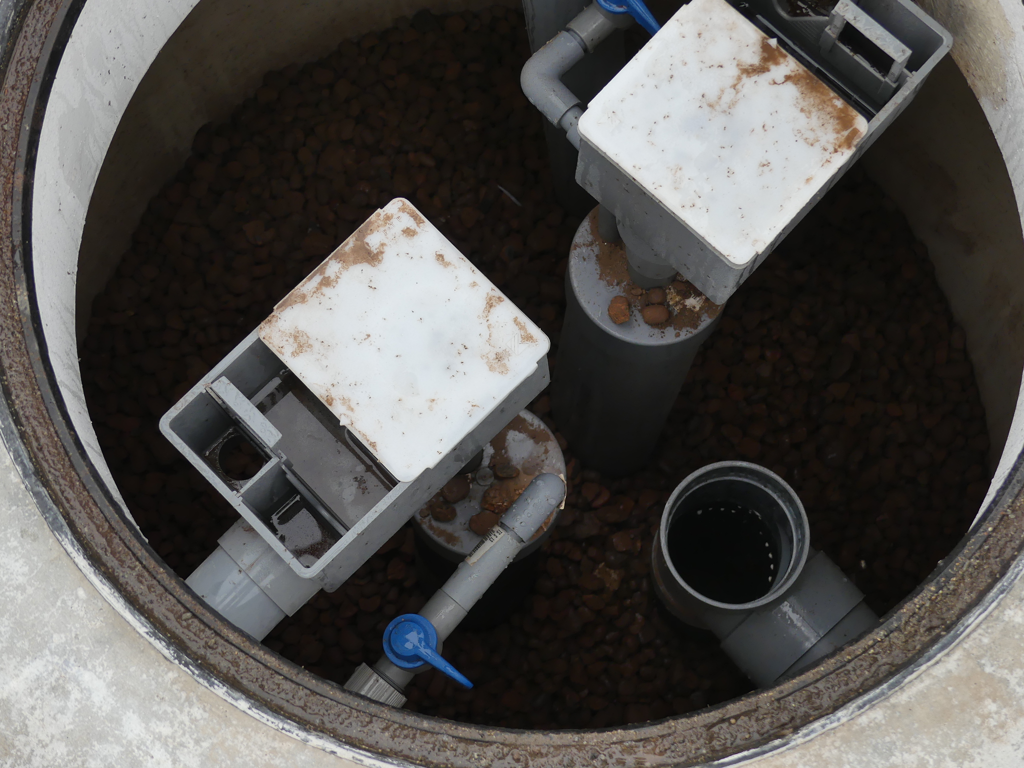 その次の槽では透明感が出るほど浄化され、浸透槽に送り出されています。